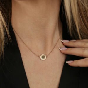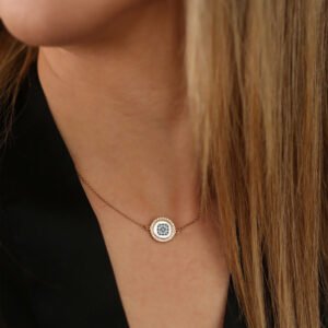 Срібний браслет в позолоті на ланцюжку у вигляді дзеркального круга з кристалами по колу.
